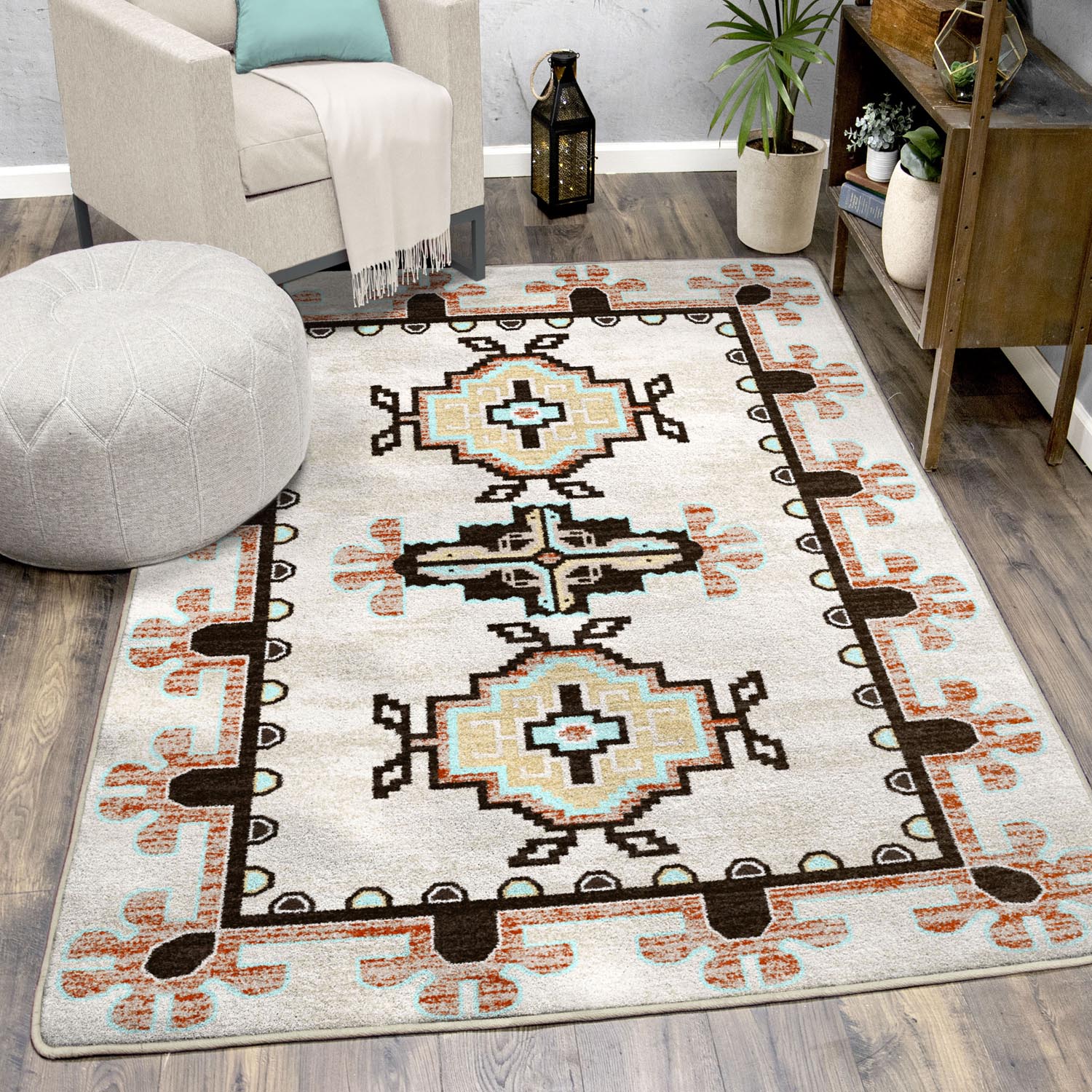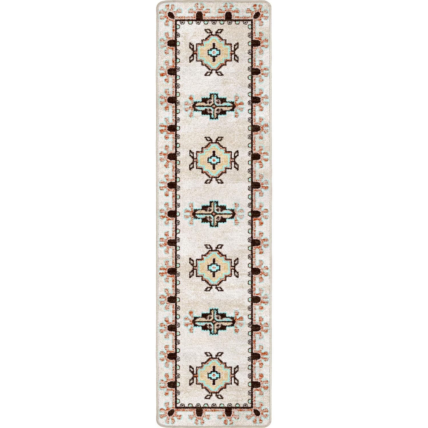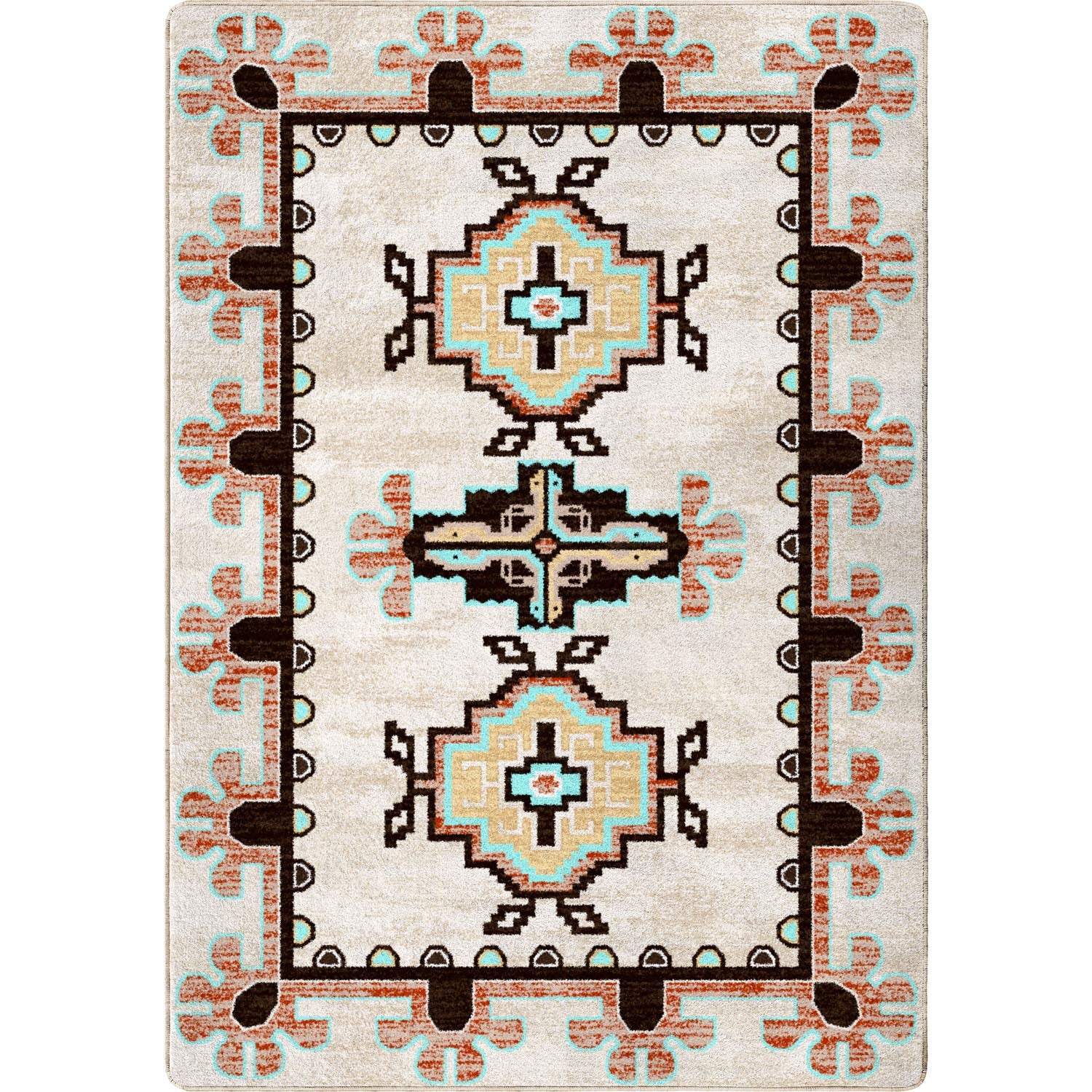 A vintage rug pattern with a slight Southwest vibe. Made from premium nylon fibers. Proudly made in the USA.